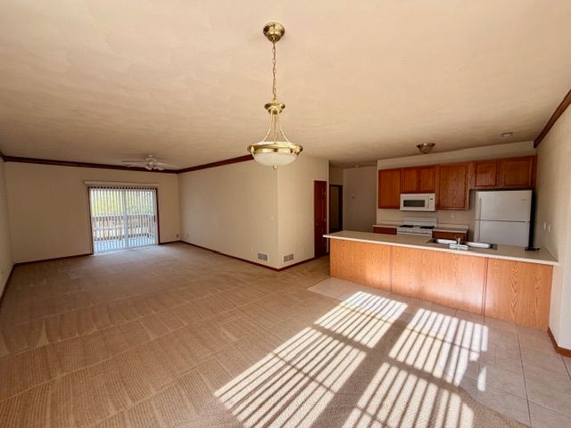 2 bedroom, 2 bath lower apartment with central air and 2 car garage. All appliances included. Hononegah Schools.