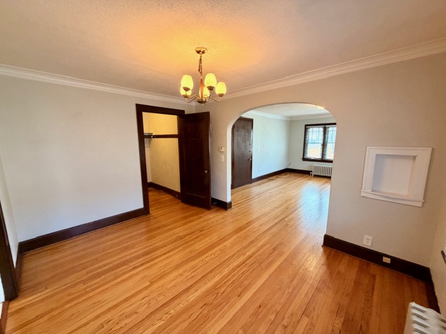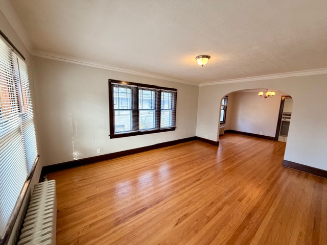 Large 2 bedroom/1 bath lower. Free laundry. Heat included in the rent. Hard wood floors. Covered parking