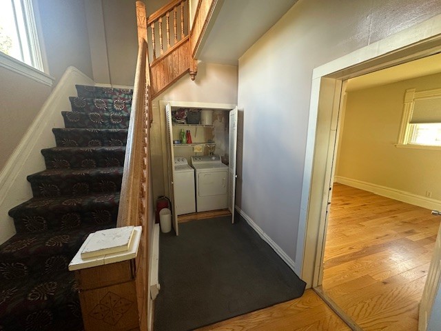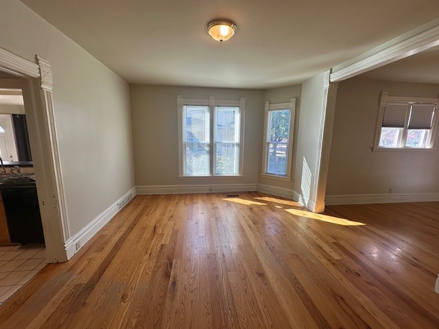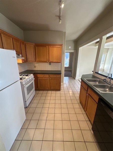 Large two bedroom two bathroom apartment with detached two car garage included. Beautiful hardwood floors with seperate dining area and spacious kitchen. All appliances - gas stove, refrigerator, and dishwasher included. Large master bedroom with attached master bath. FREE shared laundry in the building. Basement storage available. Water, sewer and garbage included in the rent. Lawn care & snow removal included. Tenant pays electric and gas. Strict No Smoking policy. Sorry, no pets.